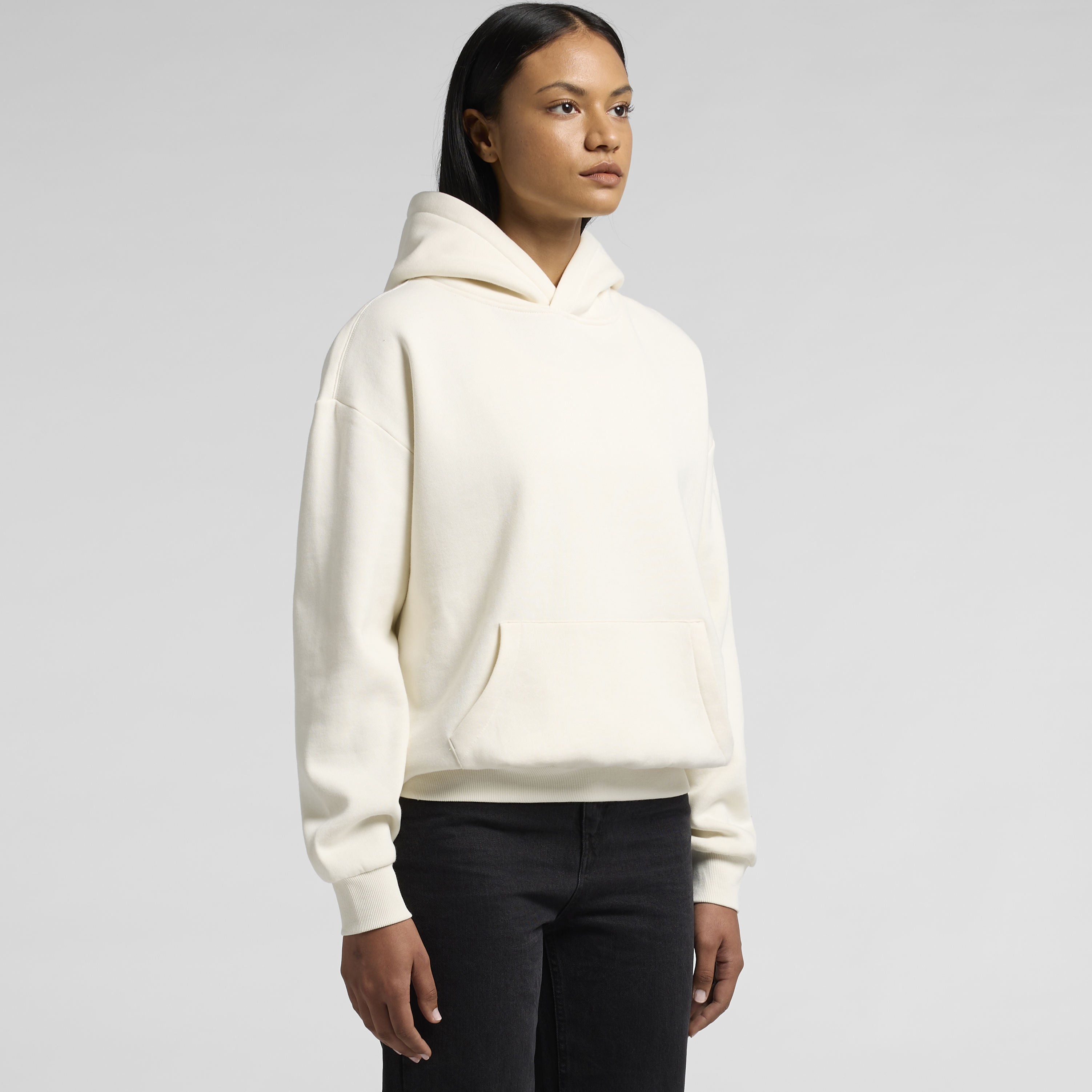Construction: Pullover hood, drop shoulder, inset sleeves, kangaroo pocket, no drawcord, hem and sleeve 2x2 ribbing, self-fabric lined hood, preshrunk to minimise shrinkage